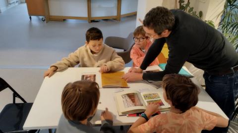 Il y avait 5 thèmes répartis sur 5 tables. Sur chaque table, il y avait des livres et des questions. On a fait 5 équipes et on devait chercher les réponses dans les livres. A chaque bonne réponse, on gagnait une pièce d’un puzzle géant qui représentait un tableau de Gustave Monet : le déjeuner des canotiers. Le véritable tableau est désormais aux USA.